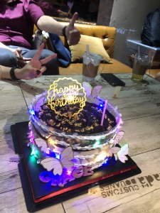 The atmosphere was so nice. An hour or so later, Cosy came in with a birthday cake. I was honestly SO SURPRISED. After all, my birthday was two days ago, and I thought if she wanted to get me a cake, she would’ve gotten me one on my actual birthday!