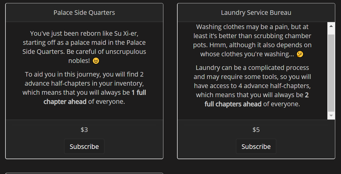 Note: Subscribing to a novel supports the translator and funds their work while also letting you read ahead. So if you want to support your translators, this is your chance!